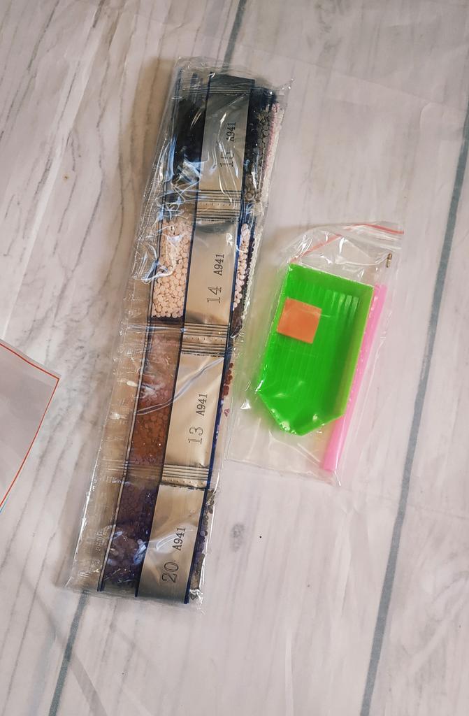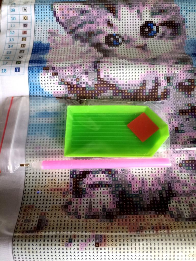 алмазная мозаика 5D 💎 Набор пришел в простом пакетике в скрученном виде 💎 Рисунок очень яркий , и номера видно четко👍🏼 💎 В набор алмазной мозаики входит: полотно-схема с клеевым слоем и условным обозначением набор соответствующих страз стилус сухой клей для стилуса поддон для страз инструкция Мне всё понравилось. К покупке рекомендую 👍🏼 Доставка месяц с живым треком Спасибо продавцу за такой прекрасный и увлекательный набор😍👍🏼♥️💋💋💋💋