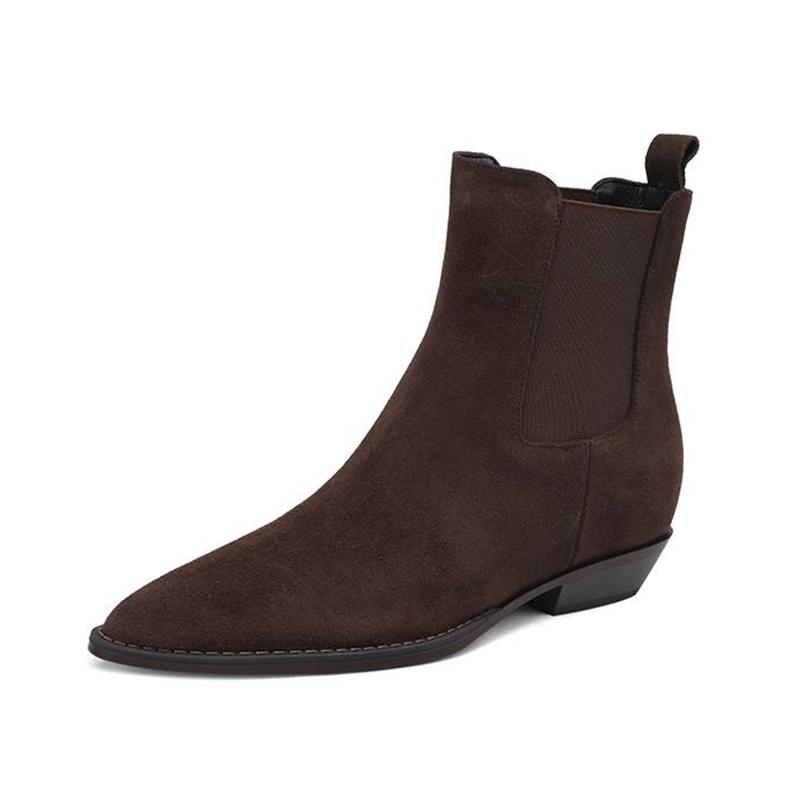 Krazing Pot Зимние ботинки челси из коровьей замши с круглым носком на толстом низком каблуке, увеличивающие рост, женские ботильоны, большой размер 41