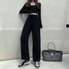 Серые бархатные повседневные брюки для женщин осенью и зимой, утепленные широкие брюки, свободные утягивающие спортивные брюки с высокой талией