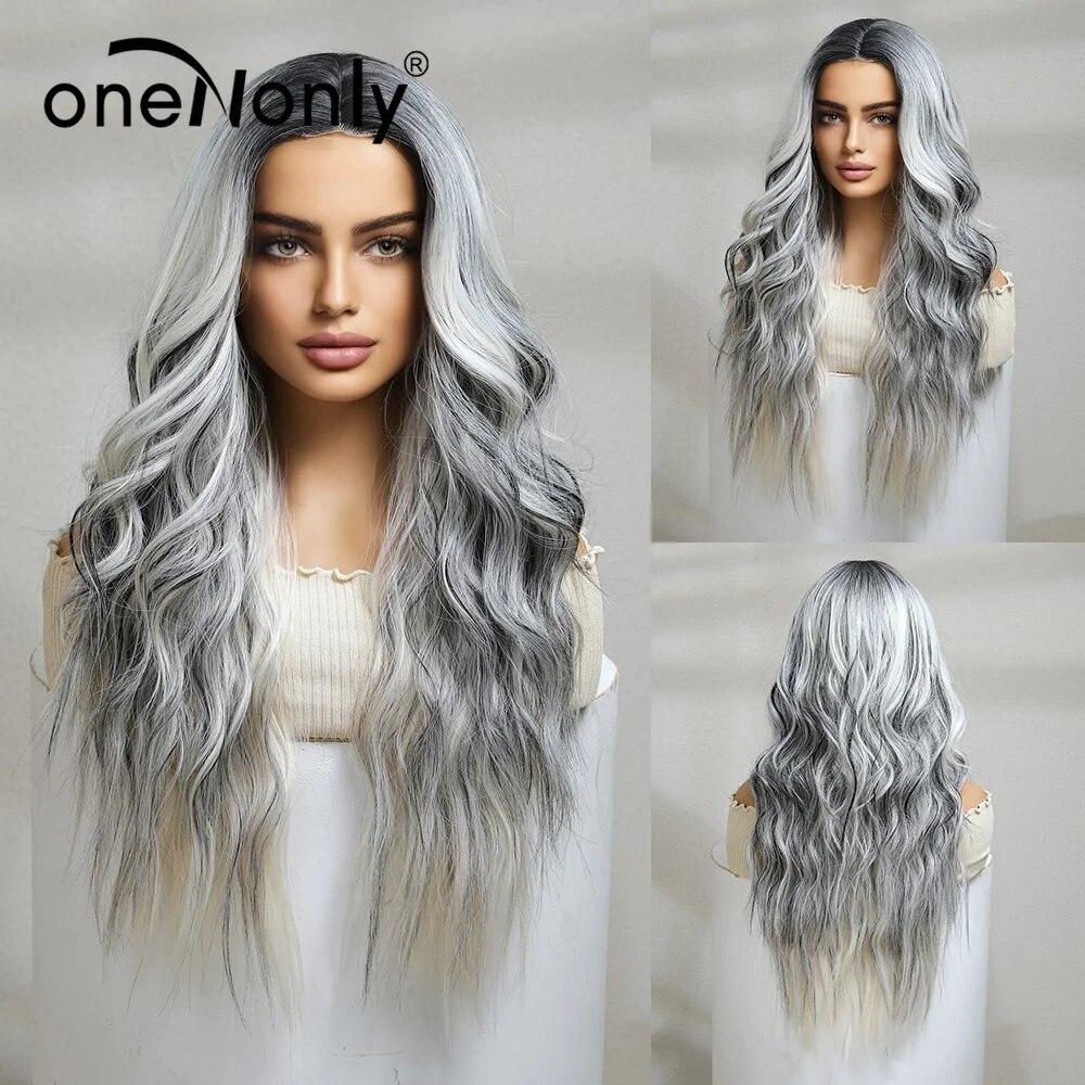 Длинный серебристый парик со светлым париком, синтетические парики для женщин, волнистый парик для косплея на Хэллоуин, волосы высокого качества