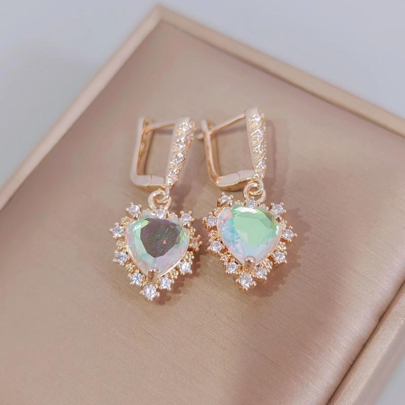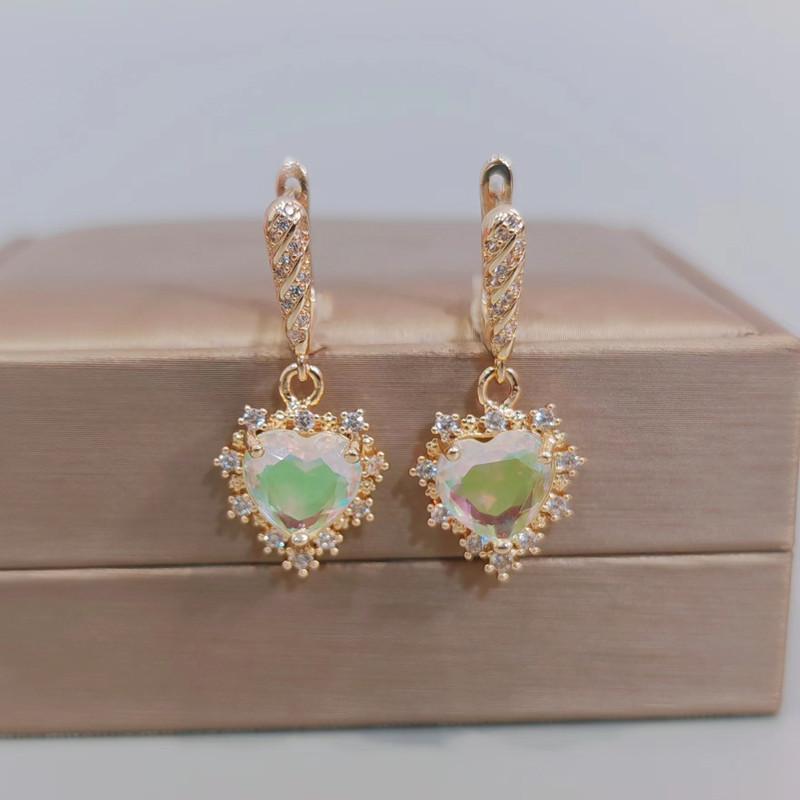 Разноцветные серьги-капли с кристаллами в форме сердца для женщин, новинка 2023 года, модные золотые серьги для свадьбы, помолвки и вечеринки, ювелирные аксессуары