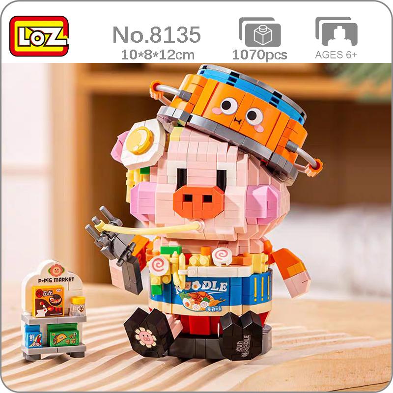 LOZ 8135 мир животных, морепродукты, лапша быстрого приготовления, свинья, продуктовый рынок, домашние животные, сделай сам, мини-бриллиантовые блоки, кирпичи, строительные игрушки для детей, без коробки