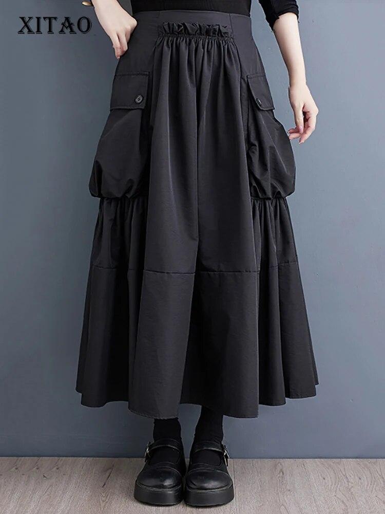 Xitao Женская юбка с карманами в стиле пэчворк с индивидуальными складками LYD1228