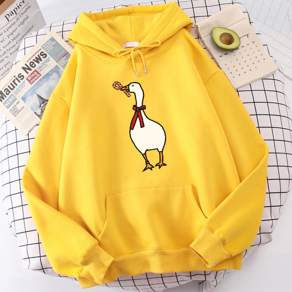 Рождественские толстовки с капюшоном и принтом карамельного гуся, женская осенняя новая уличная одежда с карманами, одежда с героями мультфильмов, модная толстовка в стиле Харадзюку