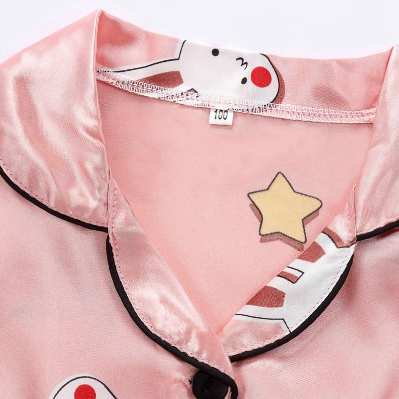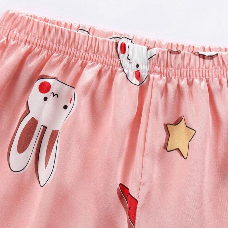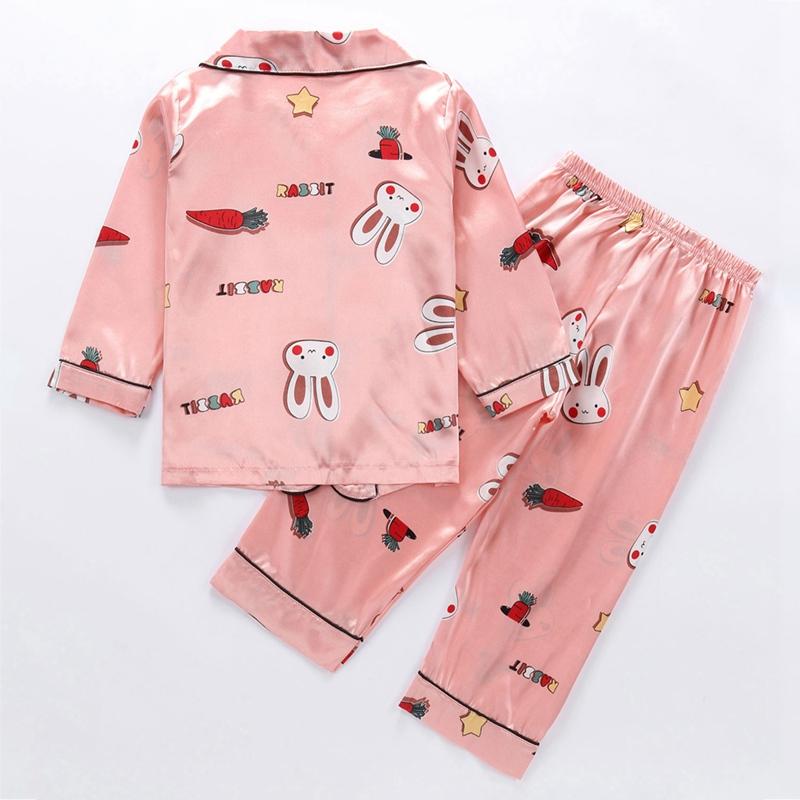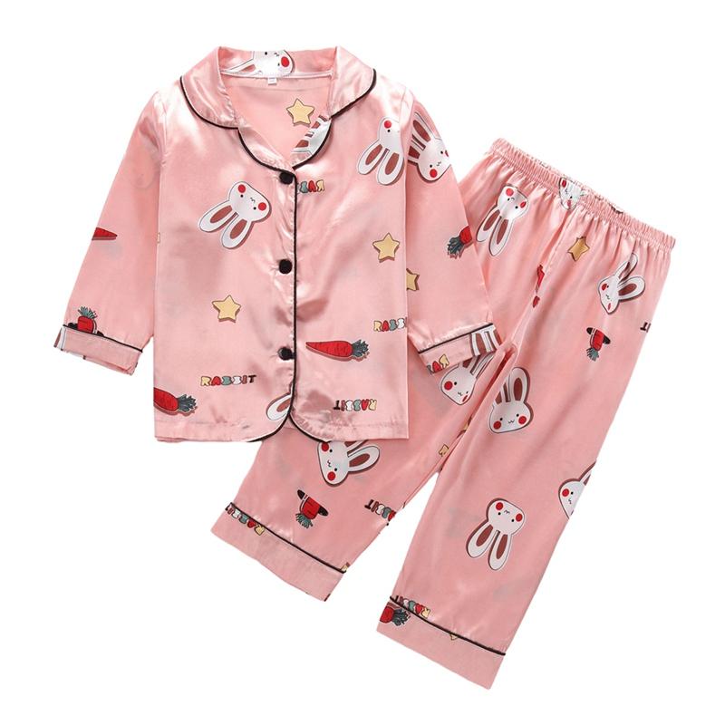 Детский пижамный комплект из ледяного шелка для девочек, кардиган с милым мультяшным принтом кролика, пальто и брюки, одежда для сна
