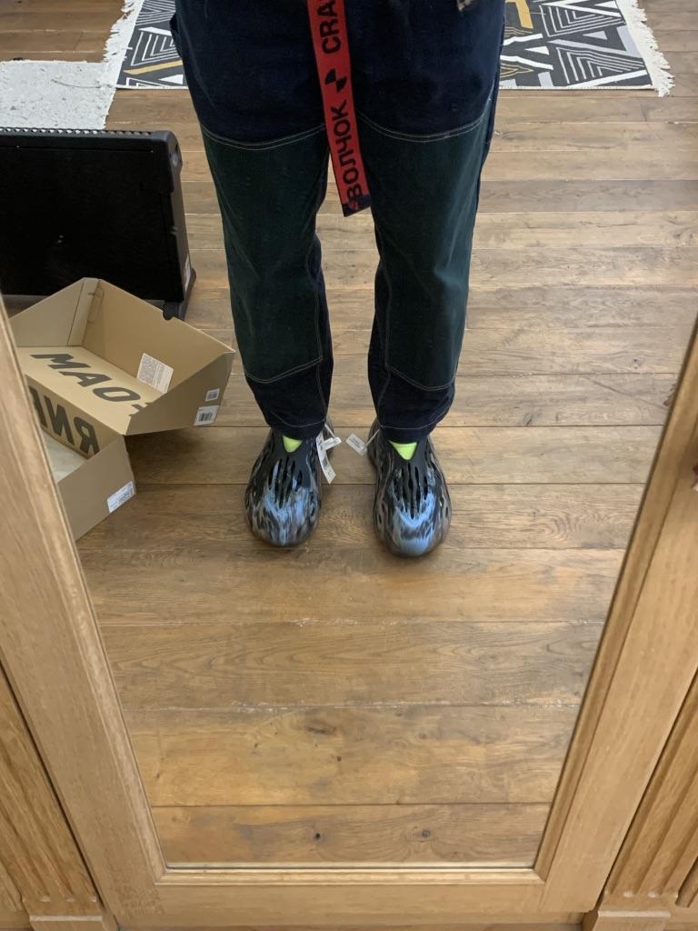 У меня стопа 28.5 см. Долго думал какой размер взять и по логике подходил 46. Дико переживал, что размер слишком большой будет, но как оказалось это размер прям четко мой. Обычно я ношу обувь чуть свободнее, но тут прям впритык. Думаю, что со временем все равно немного разносятся и станет свободнее, но пока ходить удобно, но не прям комфортно. Выглядит интересно. QR коды в коробке ведут на сайт адидаса. Сама обувь аккуратная. Выглядит как оригинал (надеюсь так и есть).