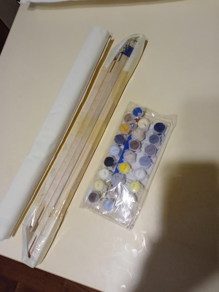 Упаковано хорошо, рамка не поломана, хотя в одном месте есть небольшая трещина,краски,кисточки в наличии,Гвоздиков достаточно