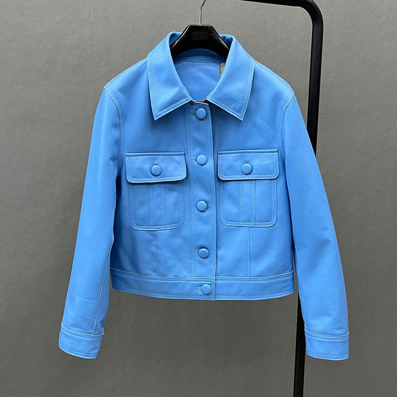 Весенне-осенняя кожаная куртка для женщин, новинка 2023 года, женские куртки-бомберы, мотоциклетные 100% настоящие дубленки