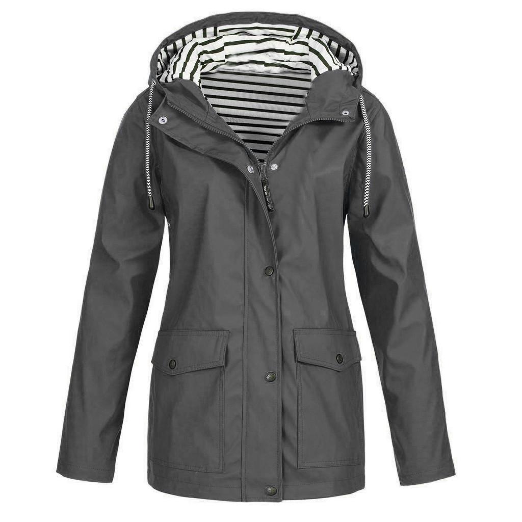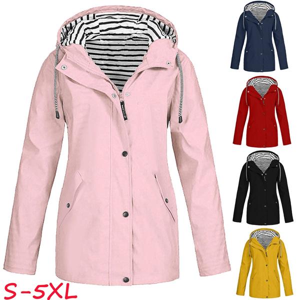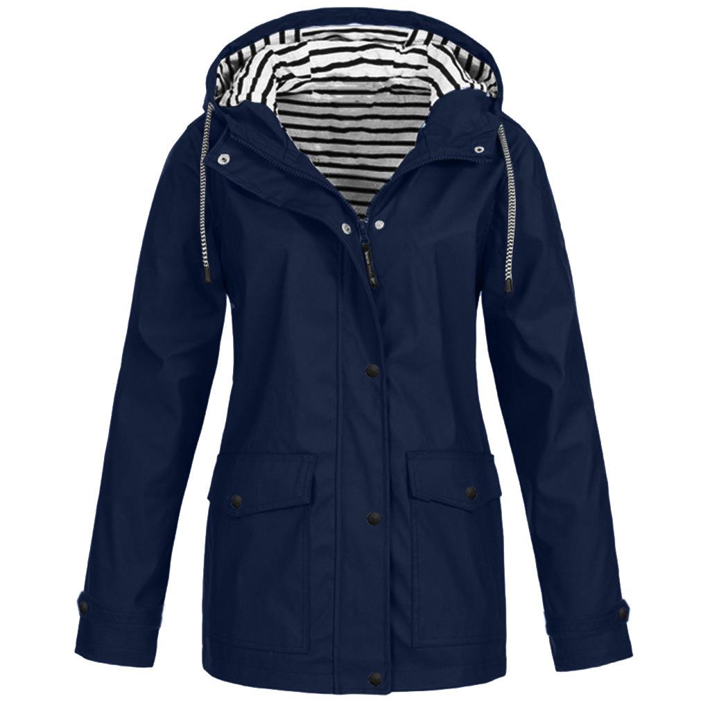 Женская мода плюс размер сплошной дождевик открытый водонепроницаемый плащ с капюшоном ветрозащитное пальто