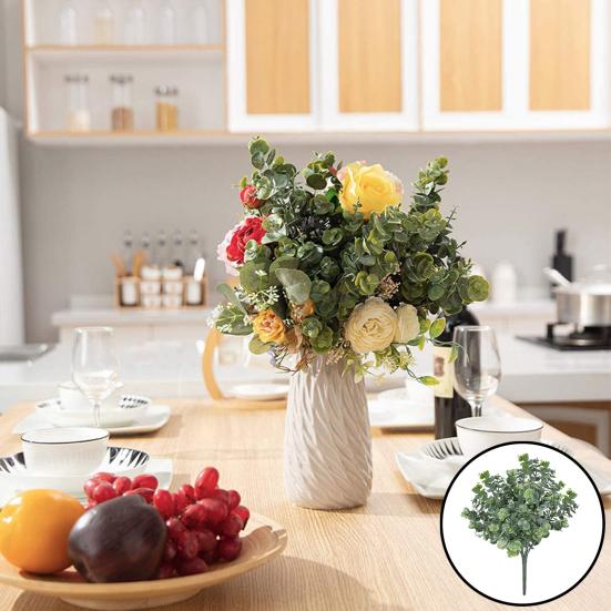 Универсальный искусственный стебель эвкалипта отлично подходит для создания красивых букетов или декора стола разными цветами.