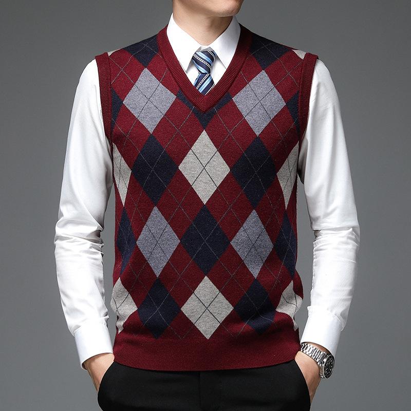 Осенний модный дизайнерский брендовый пуловер со стразами, свитер с V-образным вырезом, вязаный жилет, мужской шерстяной повседневный жилет без рукавов, мужская одежда — купить товар онлайн с бесплатной доставкой по всему миру!
