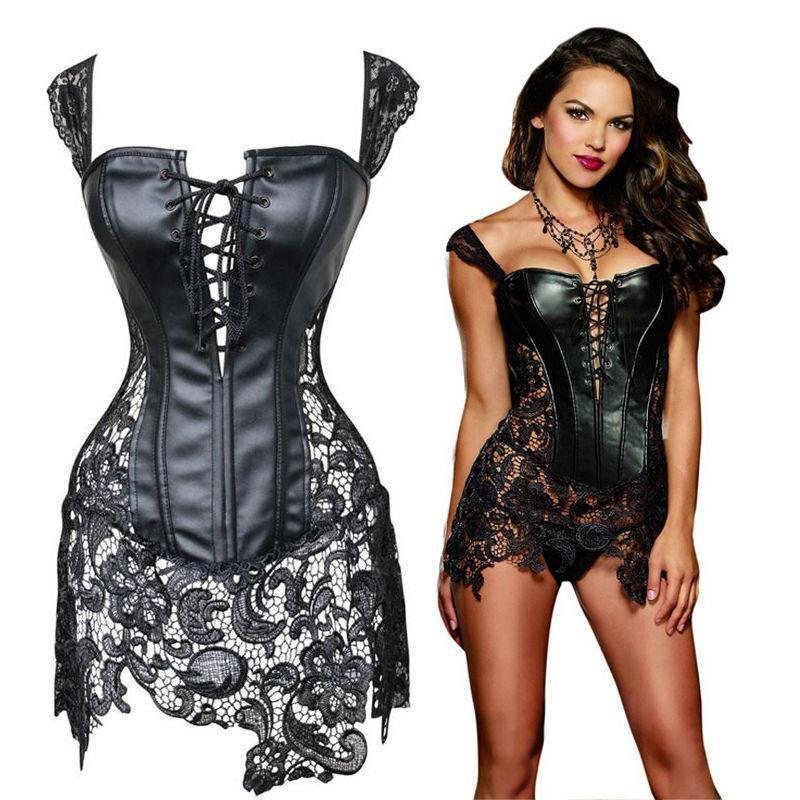 JM модный сексуальный женский корсет со стрингами из искусственной кожи, черный кружевной формирователь, бюстье, сексуальный полый кружевной корсет для коррекции фигуры, одежда размера плюс S-6XL