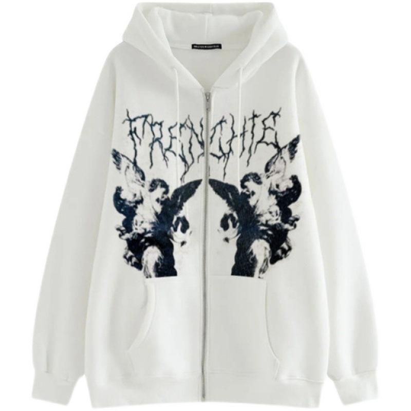 Уличная одежда в стиле хип-хоп, женские толстовки с капюшоном, готический ангел, темная куртка на молнии с принтом, пальто Harajuku Y2K, верхняя одежда с капюшоном, мужская и женская верхняя одежда в стиле панк