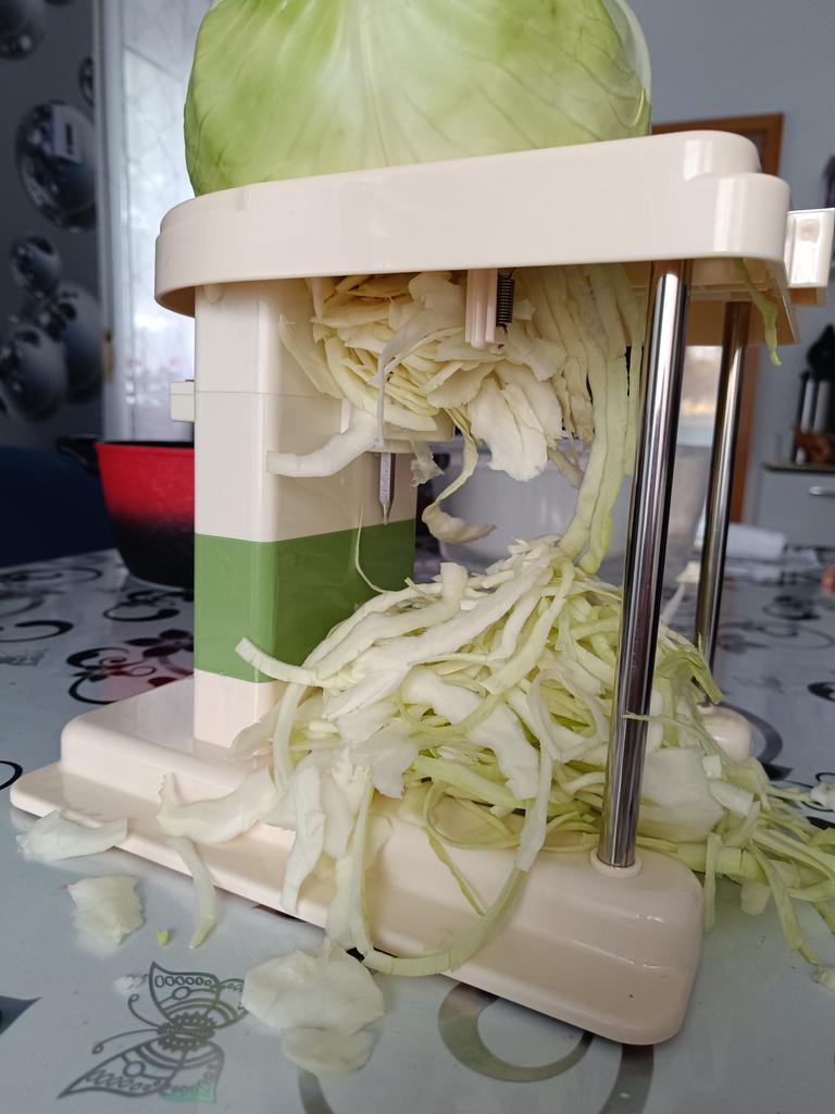 Полное г....о. Не режет капуста стоит на месте стержень прокручивается. Нужен маленький велок и только молодая капуста. И только для салата на одного человека. Вообщем не доволен очередной кидос по рекламме, зря выбрашенные деньги!!!