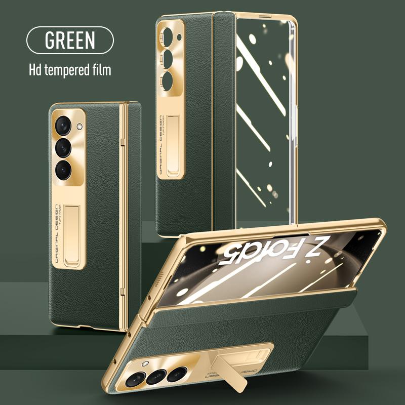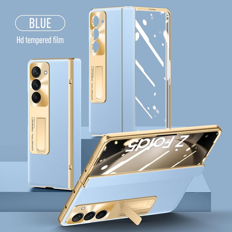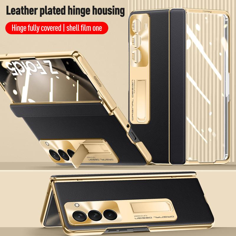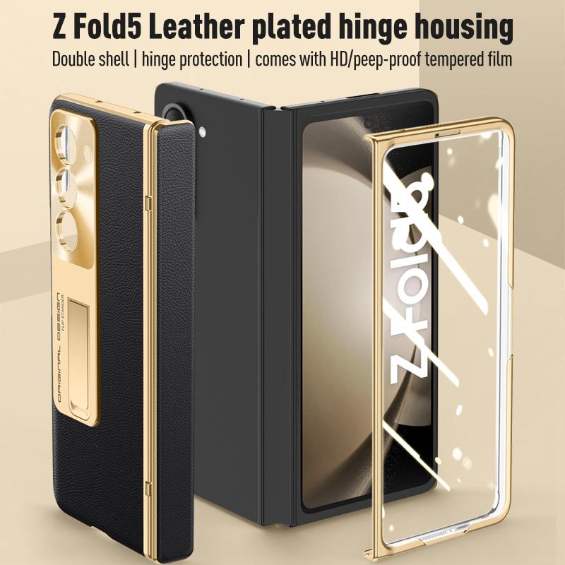 Для Samsung Galaxy Z Fold5 тонкий чехол с кожаным шарниром, защитный жесткий чехол с магнитной подставкой, стеклянная пленка для переднего экрана
