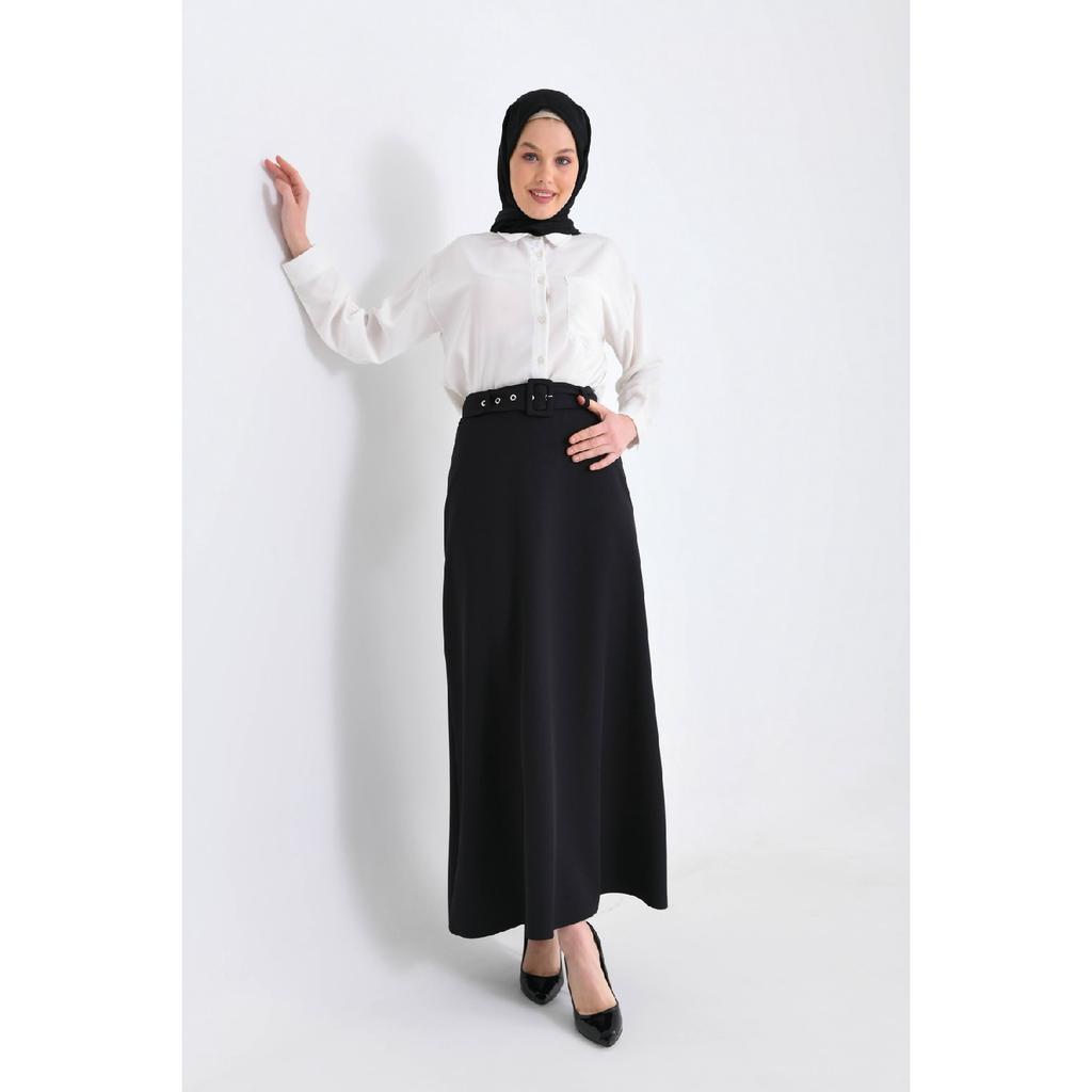 Черная юбка с пряжкой и поясом