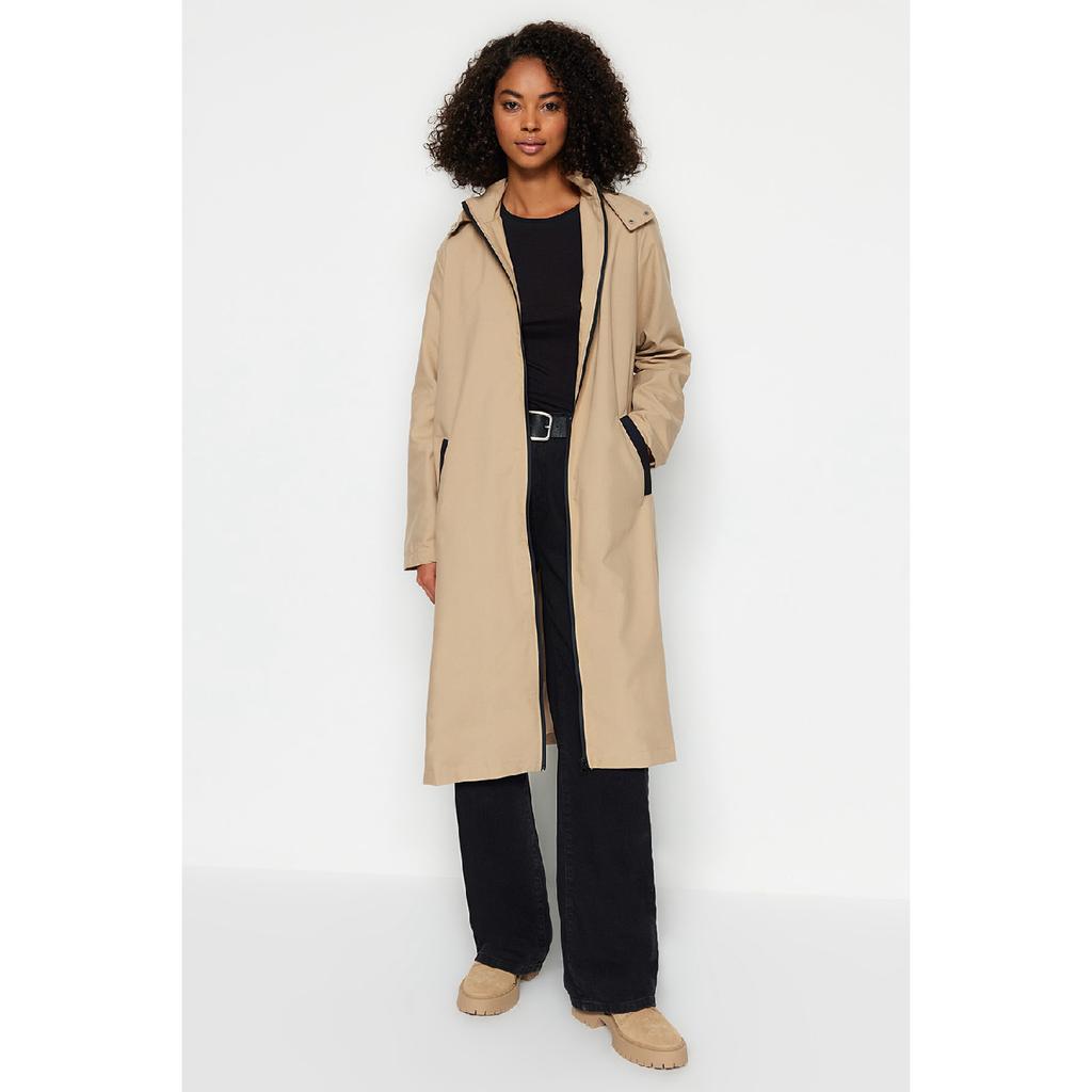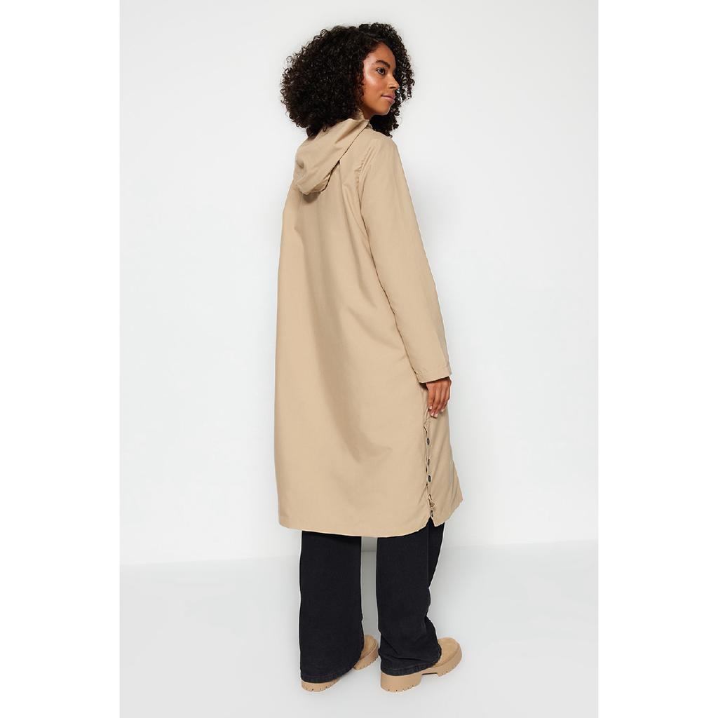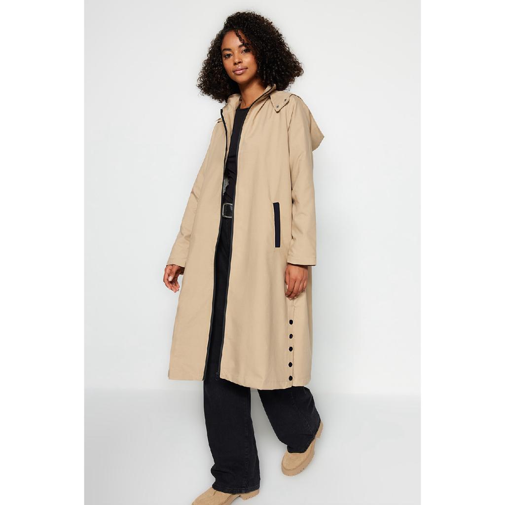 Темно-бежевый тренч с капюшоном и боковой застежкой Tctaw24cl00007