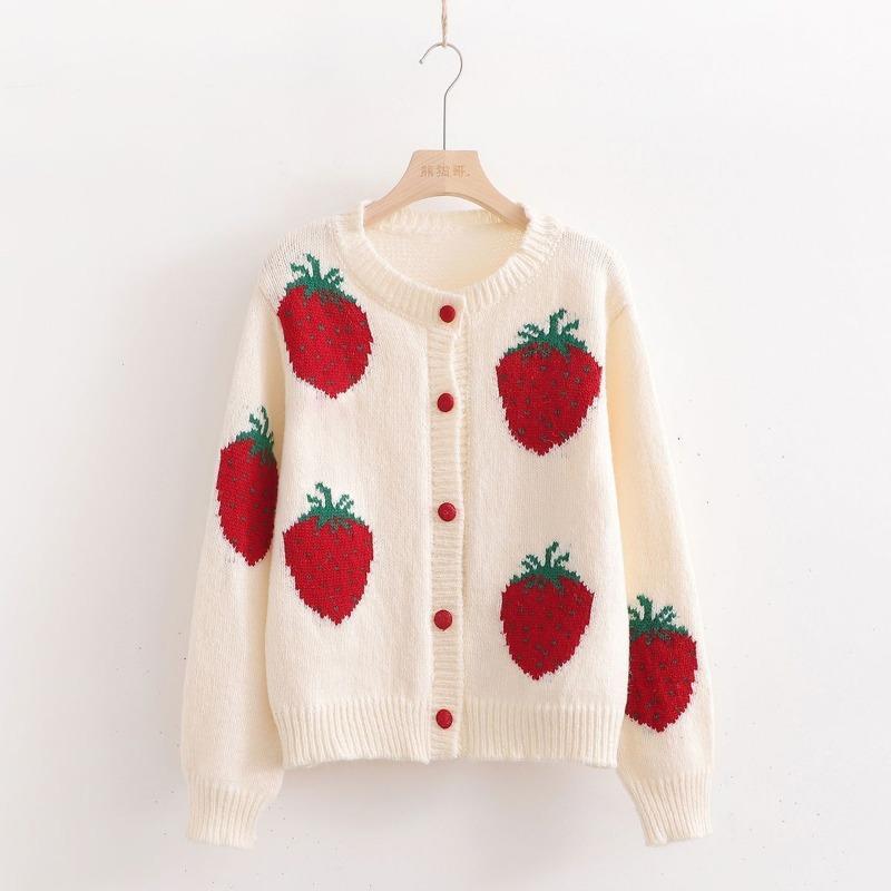 Сладкий состаренный клубничный свитер с вышивкой, пальто, женский зимний винтажный вязаный кардиган с круглым вырезом, контрастный свитер, женские топы — купить товар онлайн с бесплатной доставкой по всему миру!