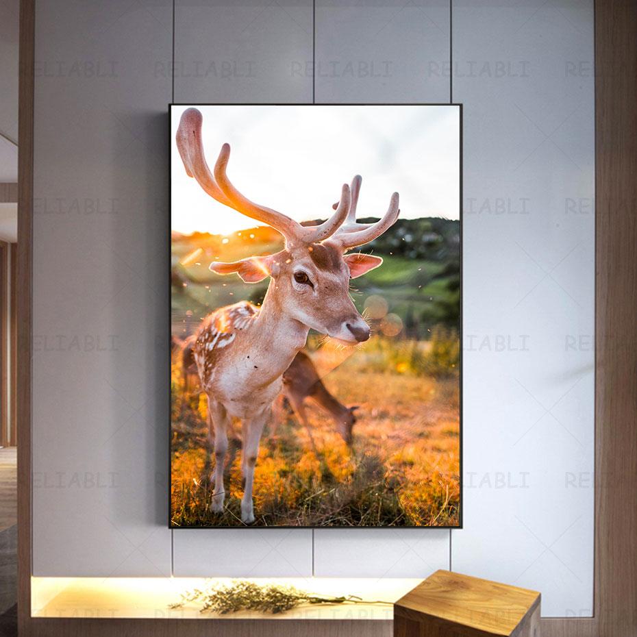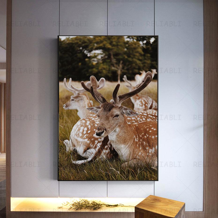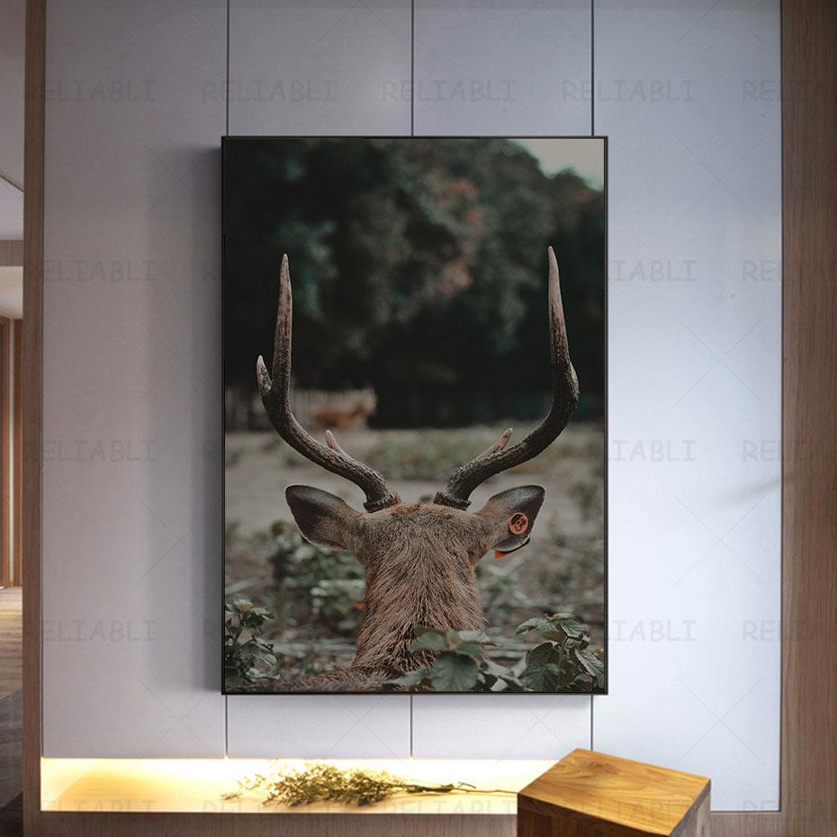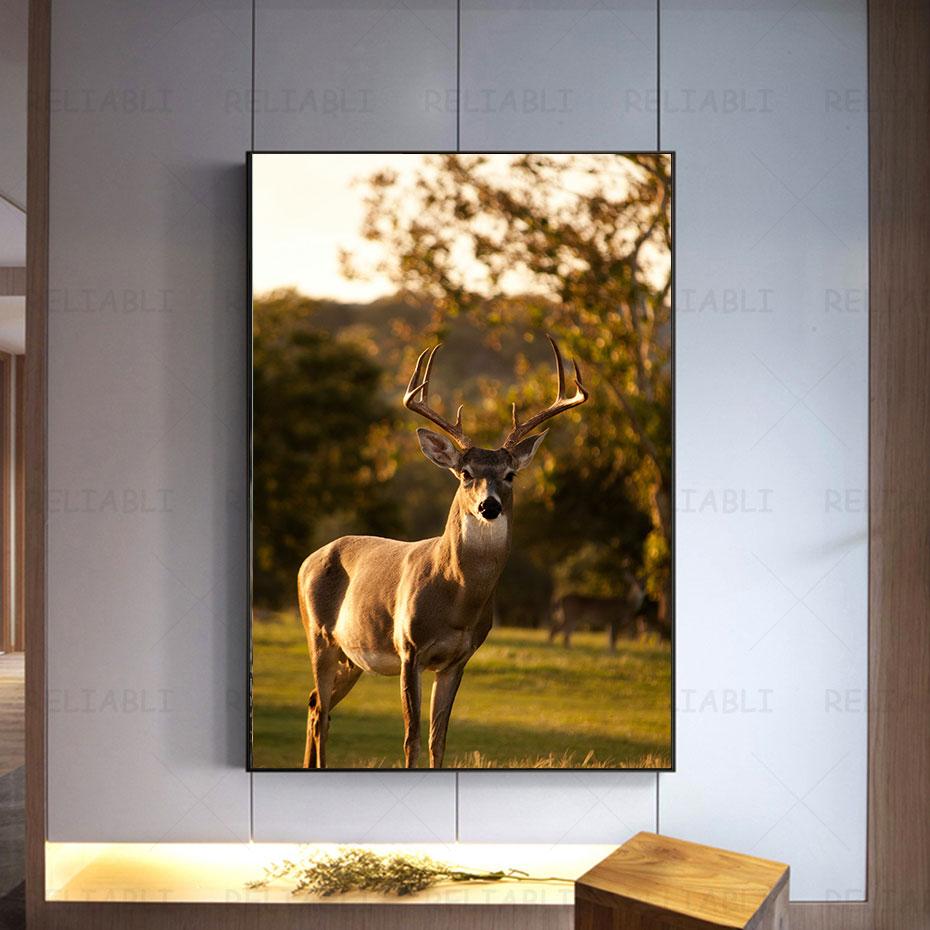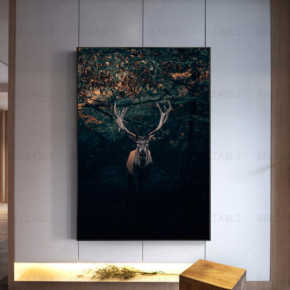 Олень в лесу, холст, картина, настенная живопись с изображением животных, постеры и принты для декора гостиной, крыльца, украшения дома, Куадрос