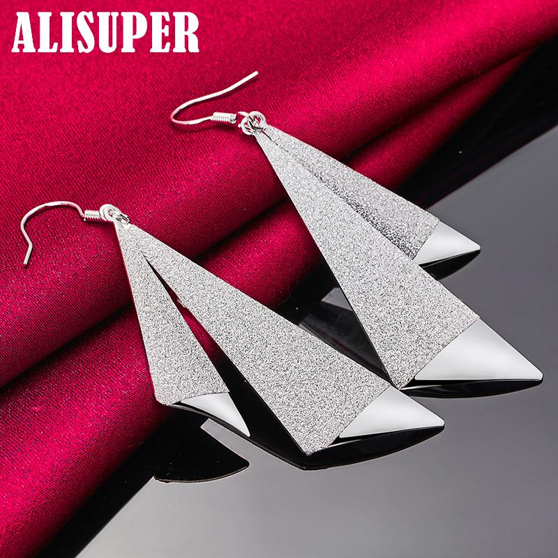 Ювелирные изделия из стерлингового серебра 925 пробы, матовые длинные геометрические серьги-капли