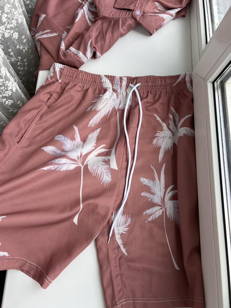 Мужская рубашка с принтом пальм в случайном порядке и шорты на талии с завязками без футболки