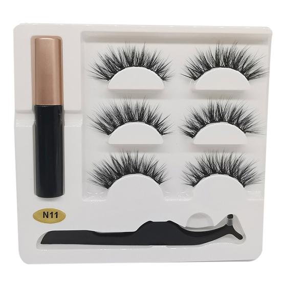 3 пары магнитных 3D накладных ресниц, жидкая подводка для глаз, пинцет, набор для наращивания ресниц