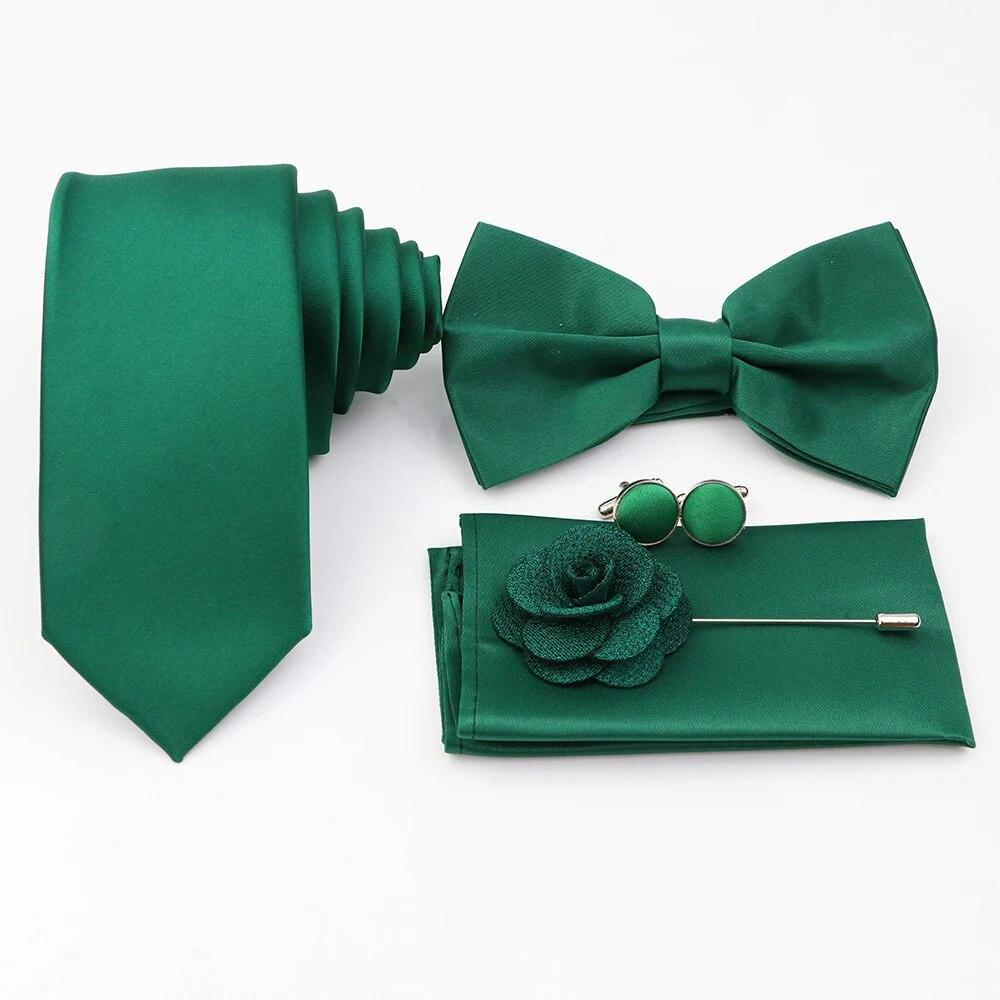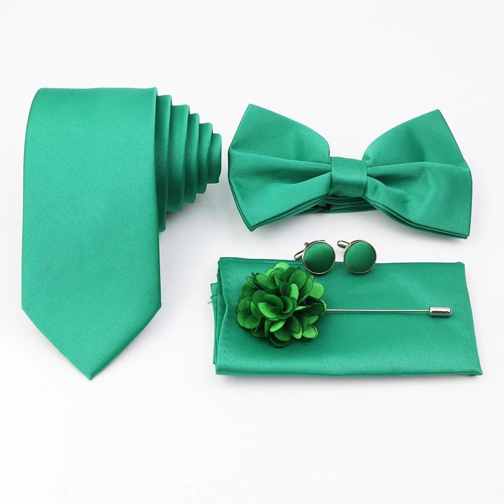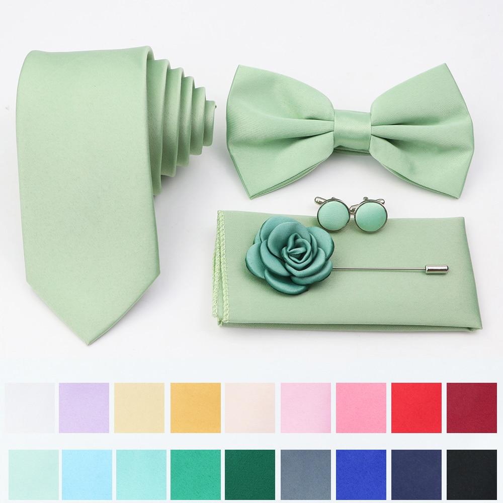 Мужской комплект галстуков из 5 предметов, шалфейный зеленый, галстук-бабочка из полиэстера, брошь-запонка, для костюма жениха, свадебной вечеринки,