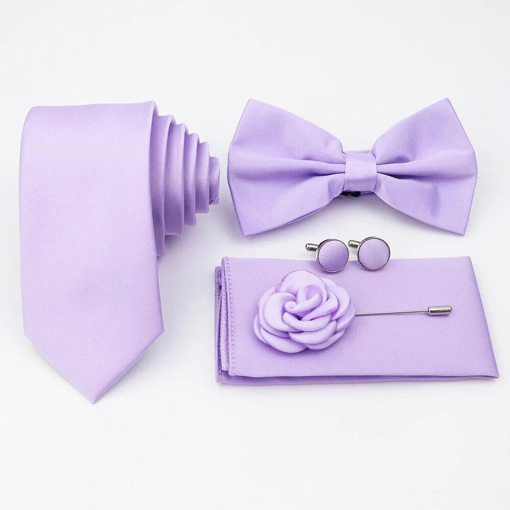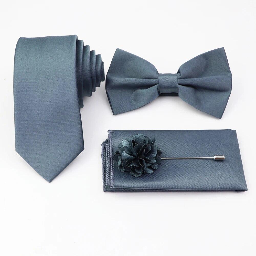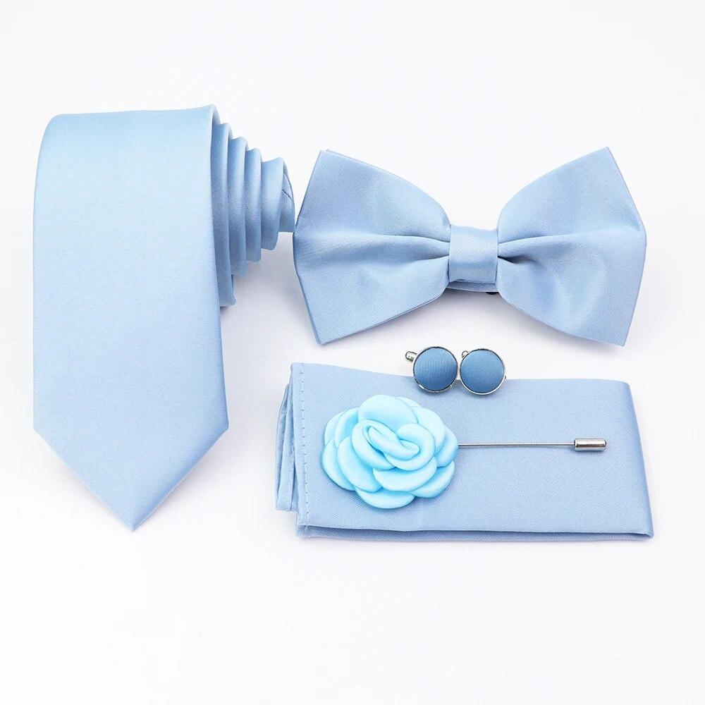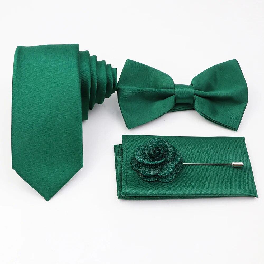 Мужской комплект галстуков из 5 предметов, шалфейный зеленый, галстук-бабочка из полиэстера, брошь-запонка, для костюма жениха, свадебной вечеринки,