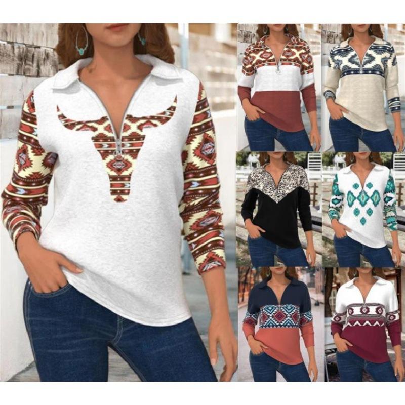 Осень-зима рубашка поло на молнии женские свободные футболки с длинным рукавом с принтом