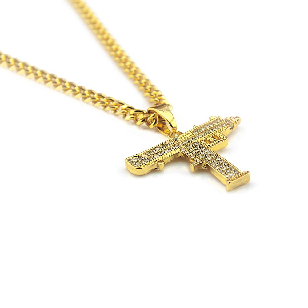 Европейский хип-хоп модное золотое ожерелье с подвеской в виде пистолета, мужское ожерелье из сплава со стразами, блестящее азиатское ожерелье с пулеметом