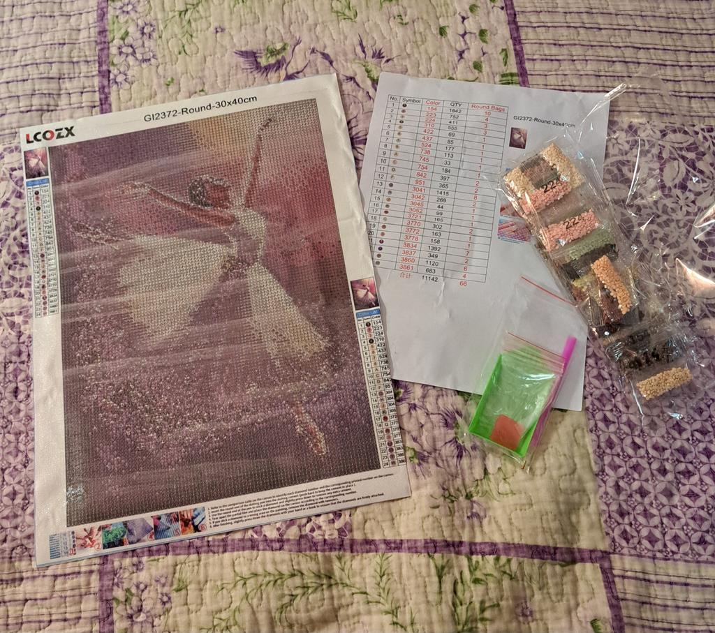 Всё пришло целое. Буду учиться рисовать алмазную картину) Люблю балет, поэтому выбрала картинку с балериной. Спасибо продавцу и Joom.
