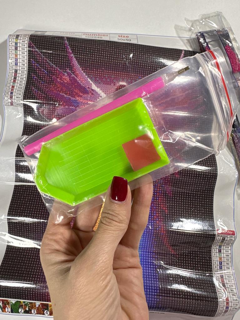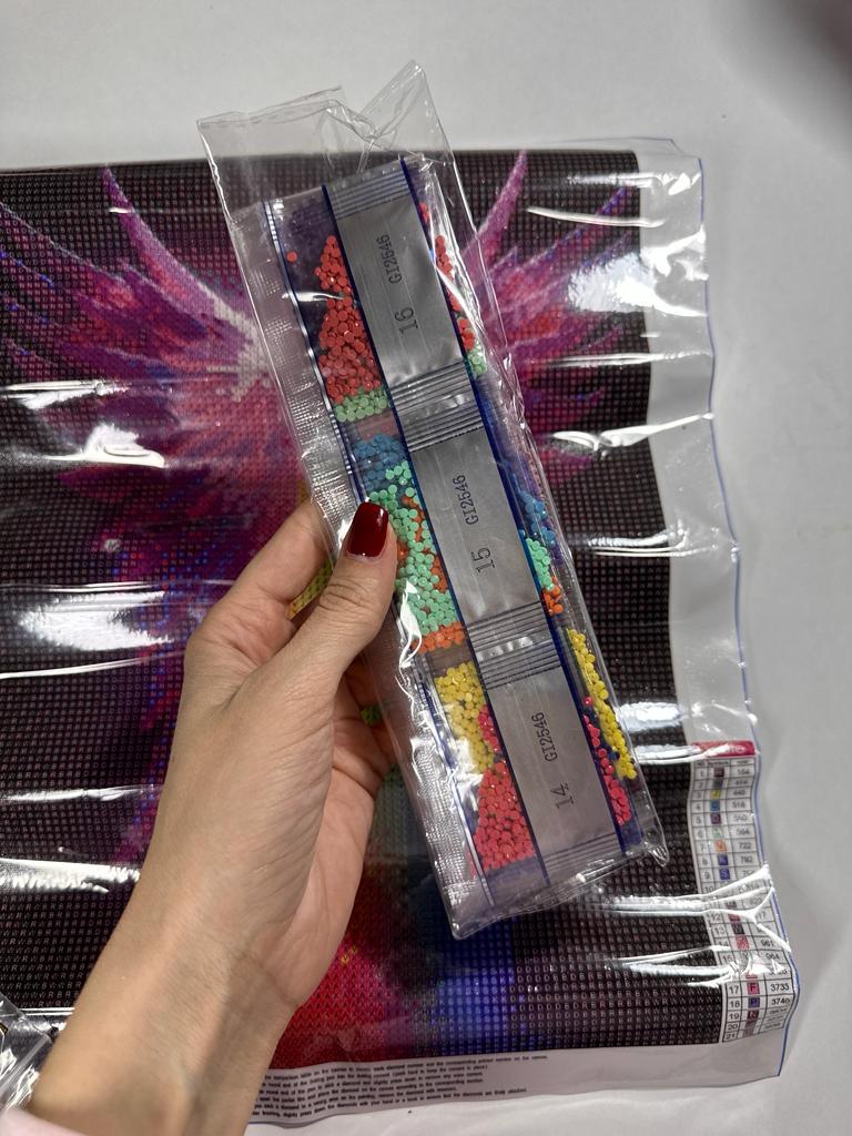 алмазная мозаика 5D 💎 Набор пришел в простом пакетике в скрученном виде 💎 Рисунок очень яркий , и номера видно четко👍🏼 💎 В набор алмазной мозаики входит: полотно-схема с клеевым слоем и условным обозначением набор соответствующих страз стилус сухой клей для стилуса поддон для страз инструкция Мне всё понравилось. К покупке рекомендую 👍🏼 Доставка месяц с живым треком Спасибо продавцу за такой прекрасный и увлекательный набор😍👍🏼♥️💋💋💋💋