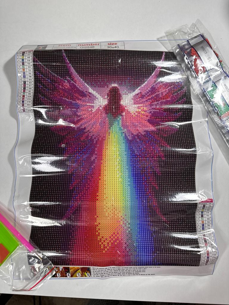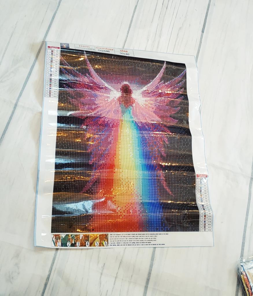 Алмазная живопись/мозаика/картина по номерам с изображением ангела 😇🌈 Невероятно красочная и оригинальная! Картина вертикальная. Размер полотна: 30*40 см. Выкладка полная. В комплекте: само полотно, круглые стразы, лоток для них, стилус и сухой клей. Товар рекомендую однозначно, очень увлекательное занятие👍👍👍💯💯💯 Доставка ✈️ до Минска заняла 3 недели. Спасибо продавцу и джуму 😘 Благодарю вас за ваши лайки,❤️ комментарии 💬 и подписку ✅🤗