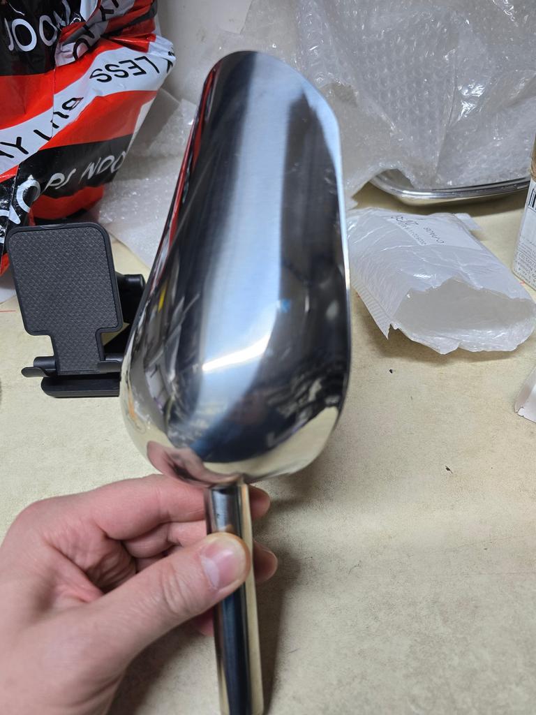 Доставка около 3х недель. Доставили прямо в ящик. Все целое. На фото размер кажется меньше. Ложка целая,без зазубрин и сколов. Зажим работает. Заказом довольна,рекомендую