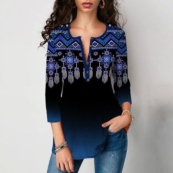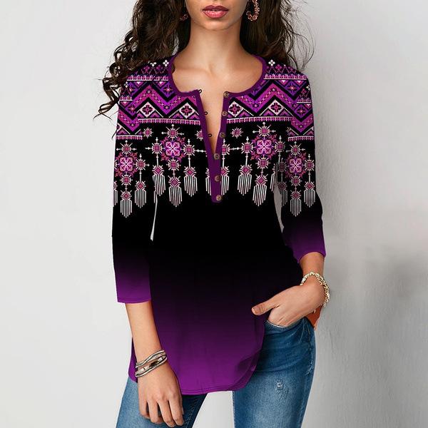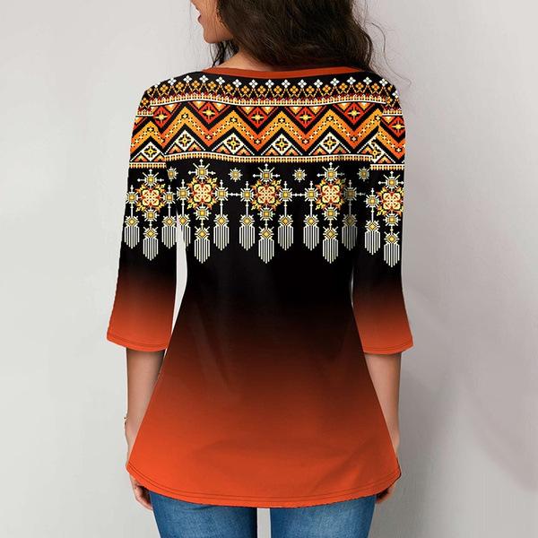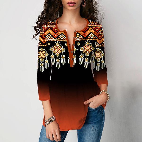 Весенне-осенняя женская футболка с v-образным вырезом и рукавом 3/4 с принтом