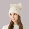 Женская зимняя вязаная шапка с кошачьими ушками, толстая защита ушей, однотонная шерстяная шапка с рукавами, шапочки с черепами