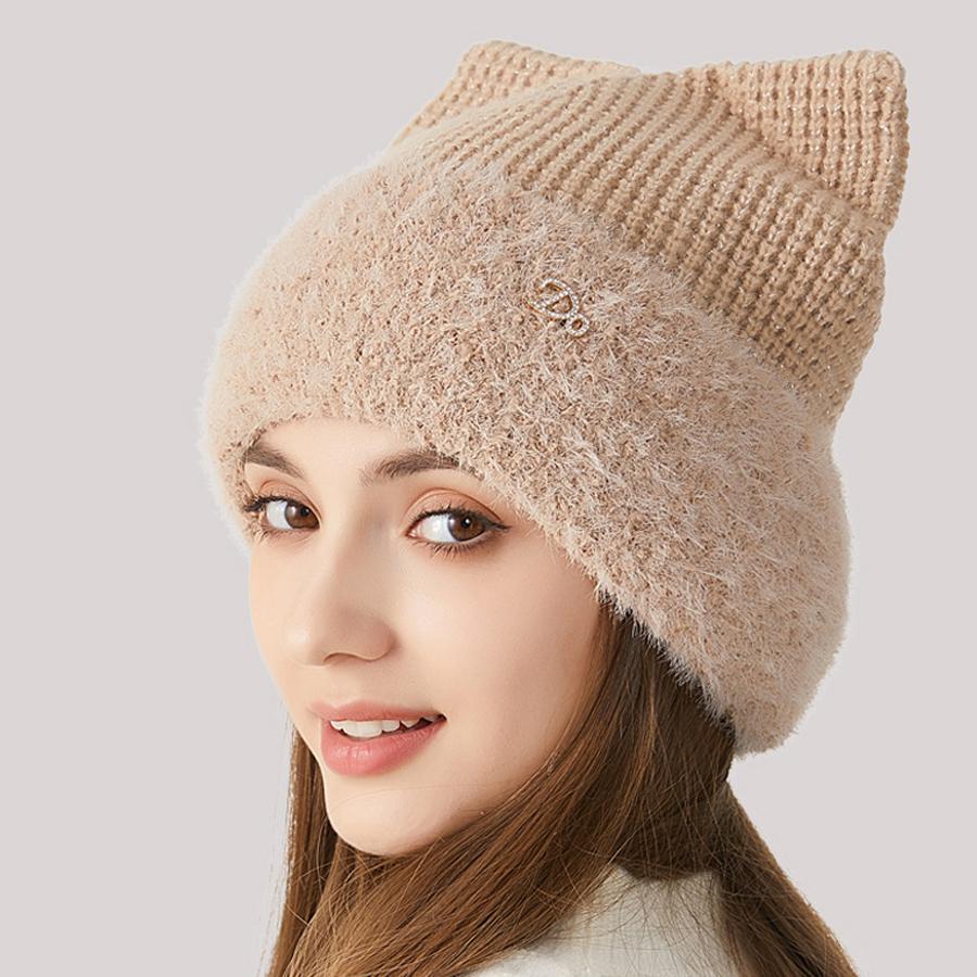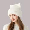 Женская зимняя вязаная шапка с кошачьими ушками, толстая защита ушей, однотонная шерстяная шапка с рукавами, шапочки с черепами — купить товар онлайн с бесплатной доставкой по всему миру!