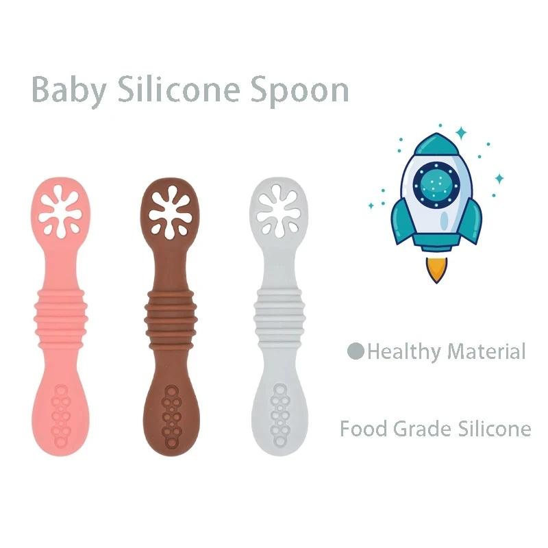 2 шт. милые детские обучающие ложки, набор посуды, пищевая силиконовая липкая ложка, детские столовые приборы, тренировочная ложка, посуда для кормления