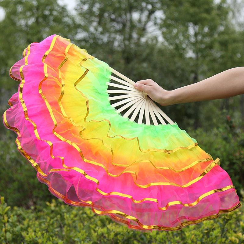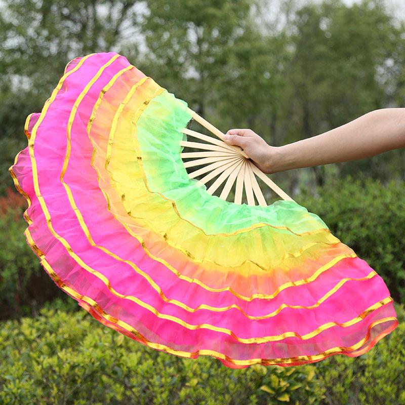 Двусторонний марлевый веер Праздничный веер для танцев Веер Янко Веер для квадратных танцев Правая рука