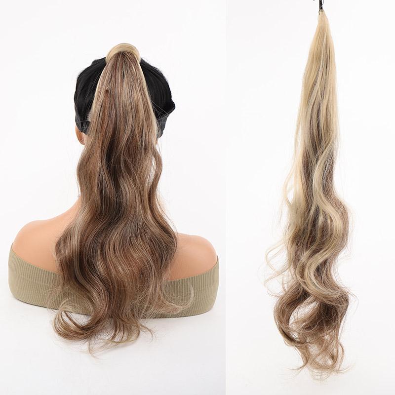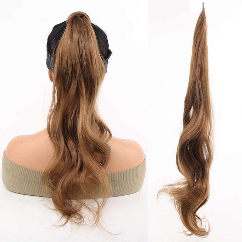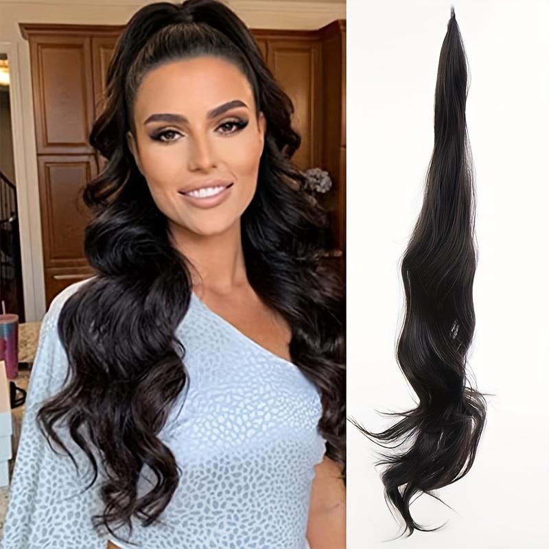 Гибкая обертка вокруг наращивания хвоста Мгновенное обертывание вокруг хвоста Длинный хвостик Наращивание волос Вьющиеся волны Синтетические хвостики Шиньон