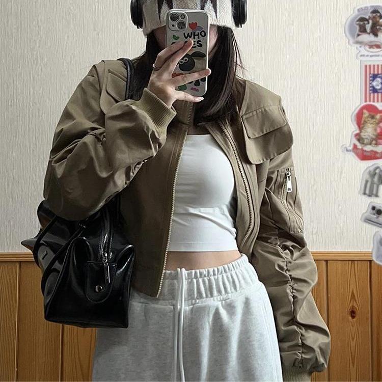 Винтажные куртки-бомберы, женские укороченные мотоциклетные куртки в корейском стиле, уличная одежда, повседневные куртки на молнии в стиле ретро 90-х годов