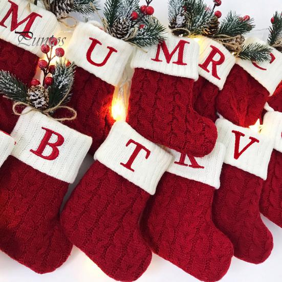 Рождественский носок с ремешком, большая емкость, насыщенный цвет, классический дизайн с буквами, чулок, подвесное украшение