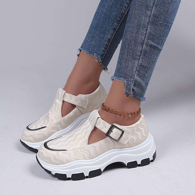 Женская спортивная обувь большого размера на толстой подошве, повседневная обувь в тон с пряжкой на ремне