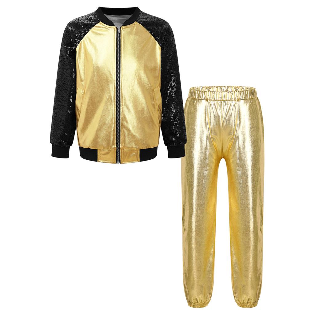 Детский костюм для джазовых танцев в стиле хип-хоп для девочек и мальчиков, топ на молнии, куртка со штанами, комплект одежды для уличных танцев