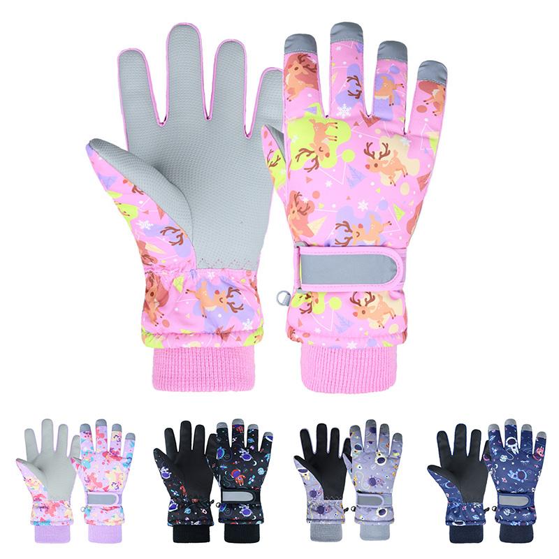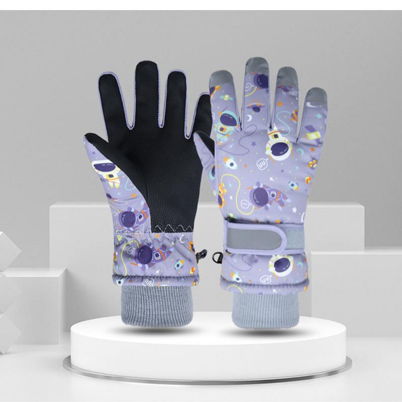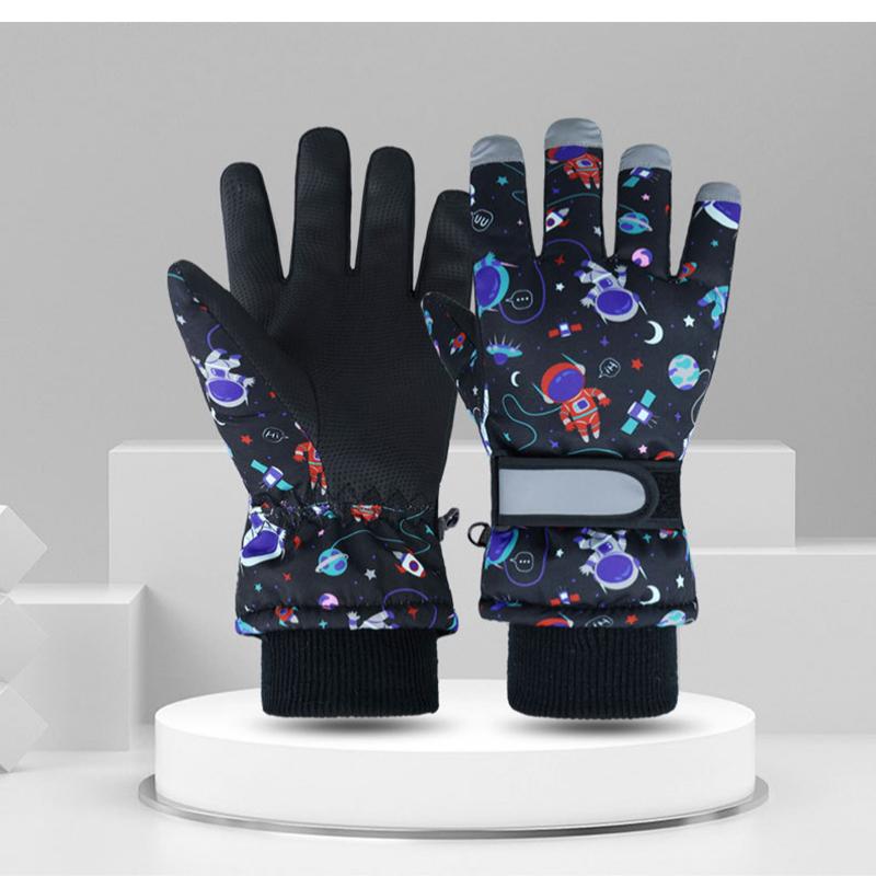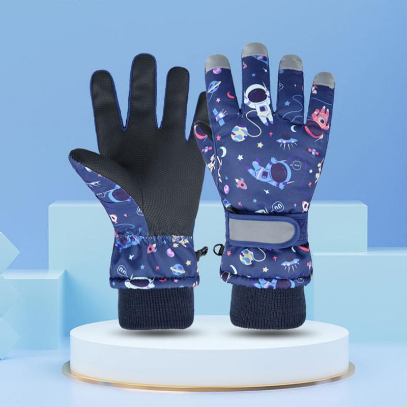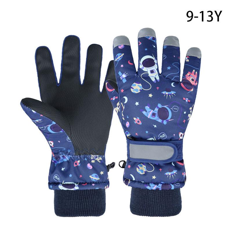 Детские лыжные перчатки из кораллового флиса для мальчиков и девочек, зимние плюшевые утолщенные лыжные перчатки, противоскользящие водонепроницаемые велосипедные варежки, детские аксессуары, От 4 до 13 лет