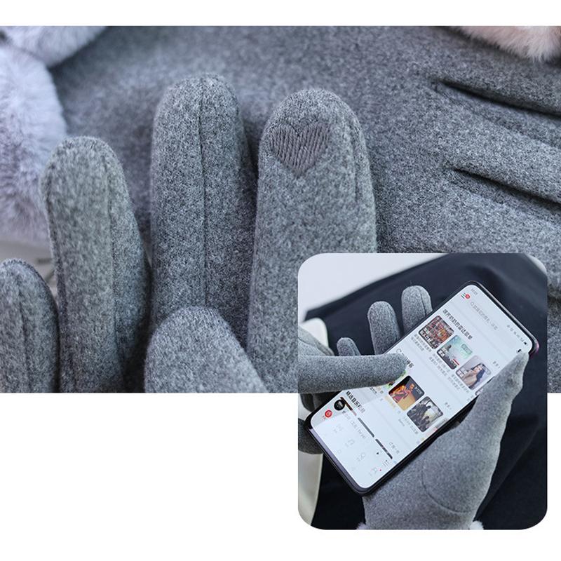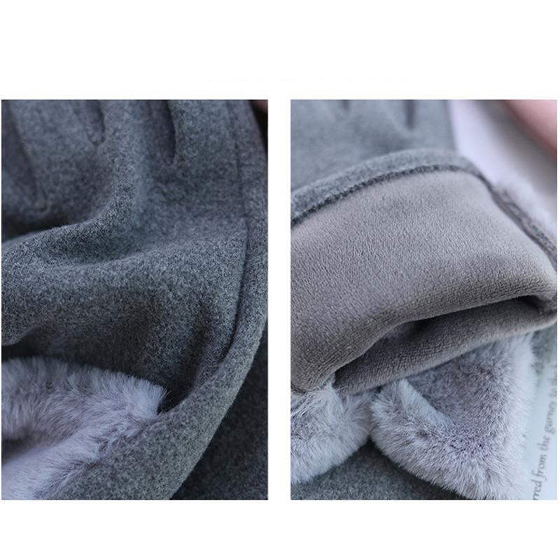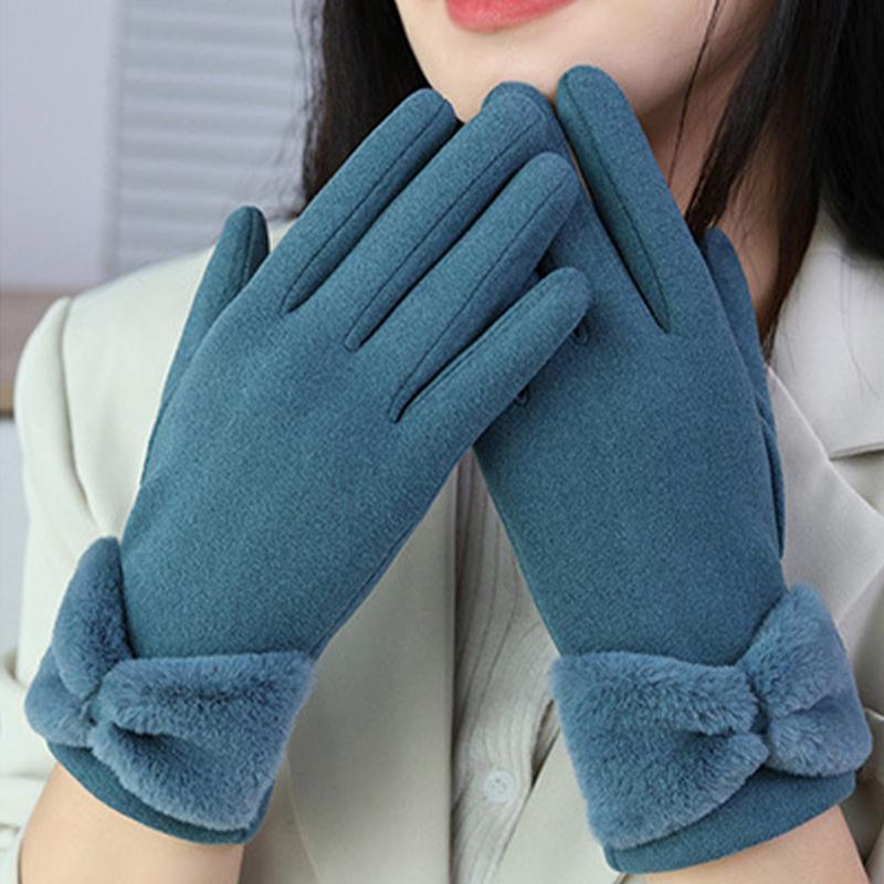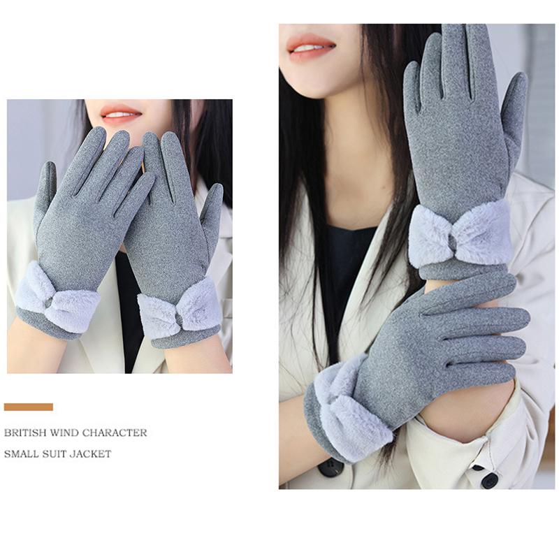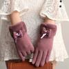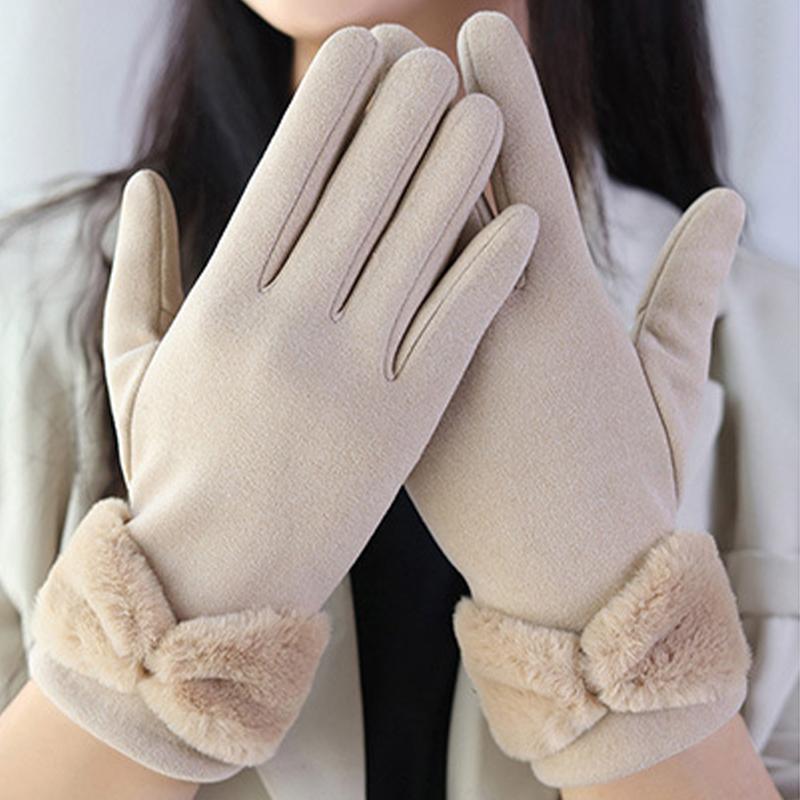 Сплошные зимние теплые перчатки, элегантные плюшевые женские перчатки с бантом и манжетами, стильные повседневные ветрозащитные перчатки