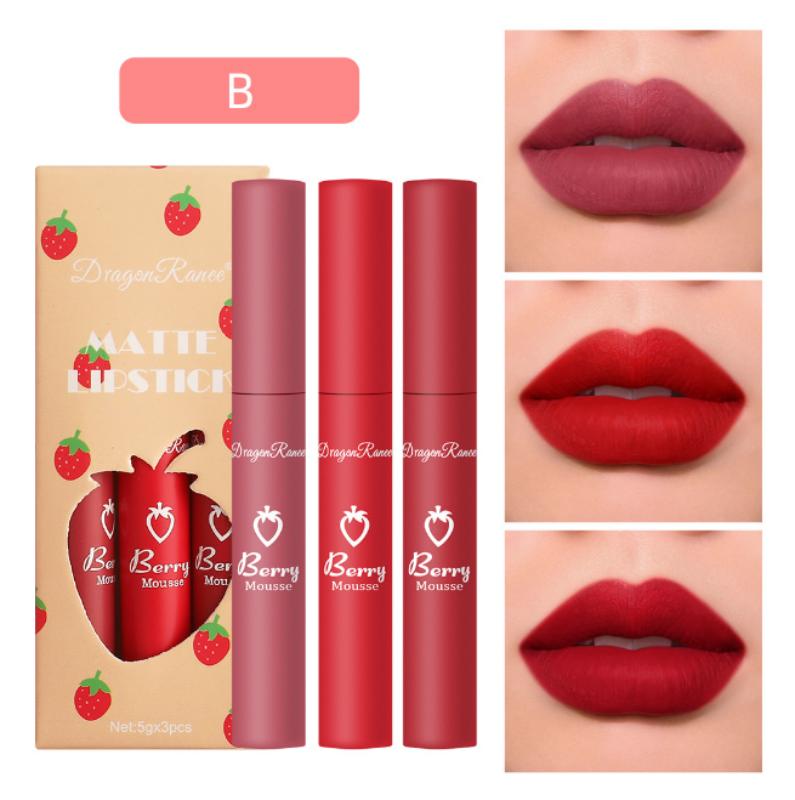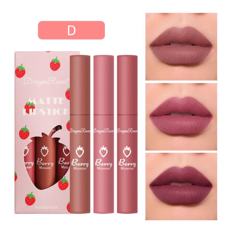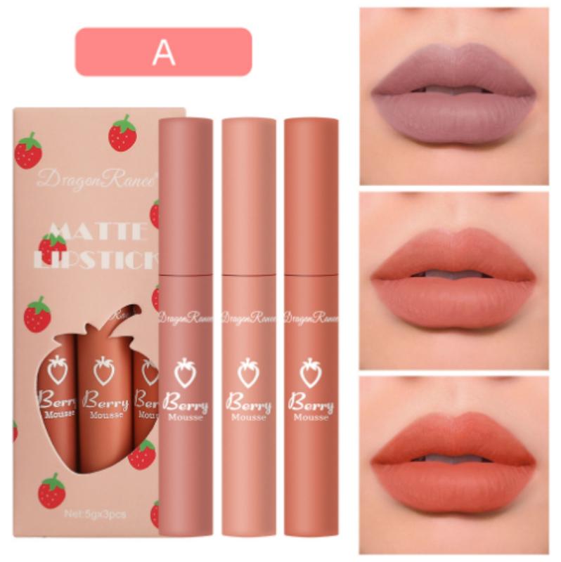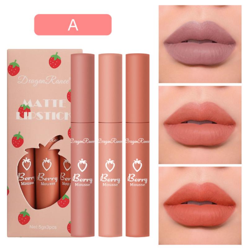 12 цветов, губная помада для макияжа, блеск для губ, водостойкая немаркирующая помада, долговечная влажная косметическая помада, костюм из 3 предметов