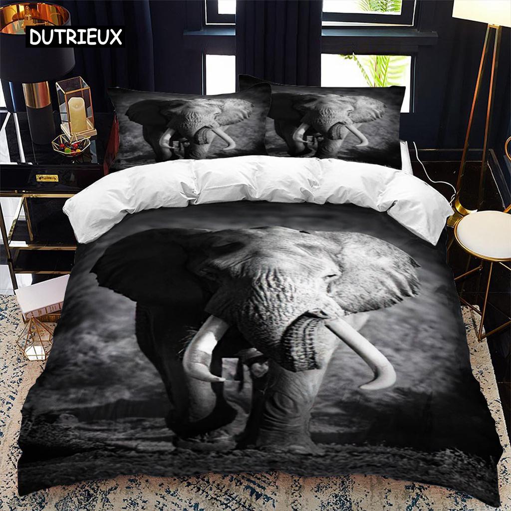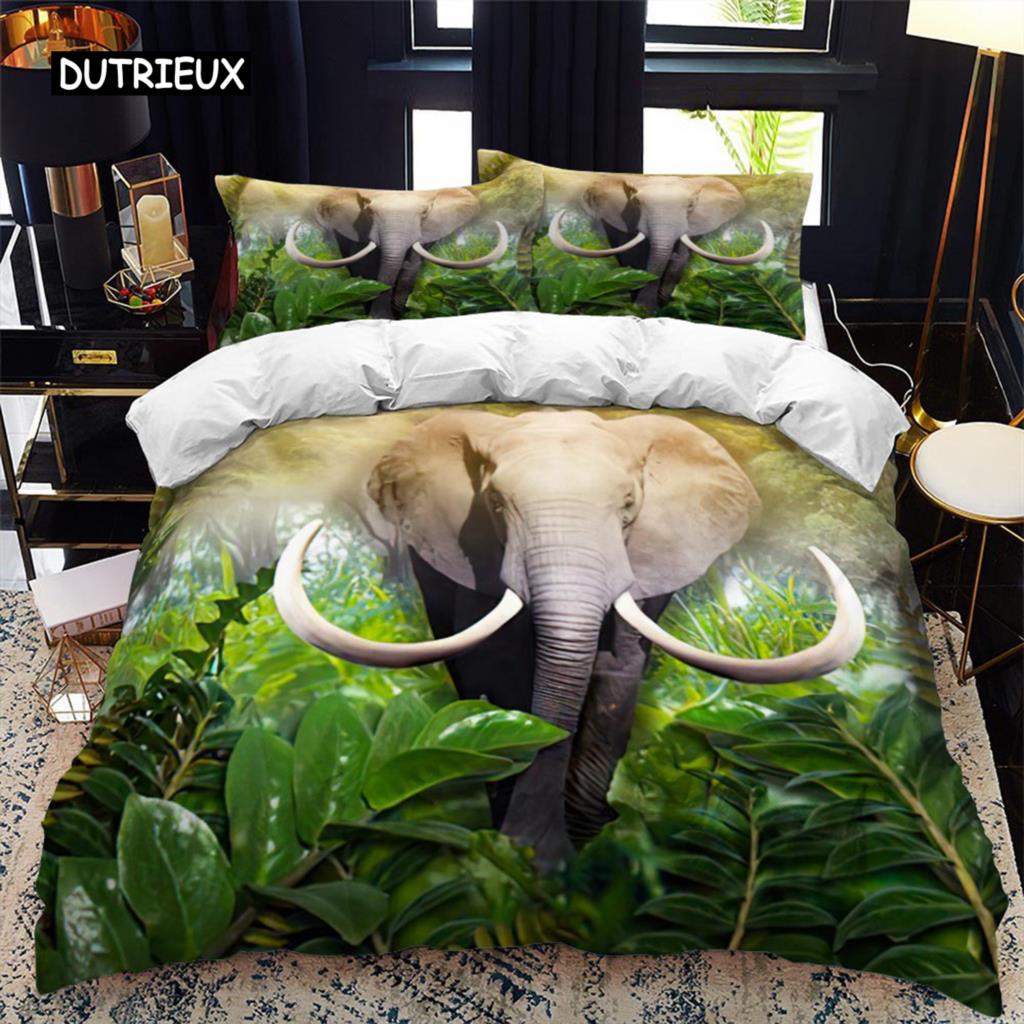 Комплект пододеяльников с изображением слона, комплект королевского размера, комплект постельного белья с изображением диких животных для детей, подростков, мальчиков, двойной пододеяльник из микрофибры King