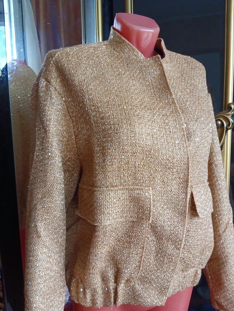 Мне очень понравилось👌 Мой размер 52 54, Чуть длинноваты рукава но это вообще ерунда, Бюст 120, Всё село просто отлично👍 Имеется небольшой запах кое- где торчат ниточки это мелочи, Для красоты приколола Брошку, Продавцу большое спасибо рекомендую👌