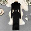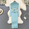 Шикарное элегантное облегающее платье с высоким воротником и длинными рукавами и поясом, пикантное модное вязаное платье, тонкий осенне-зимний свитер-карандаш, халат